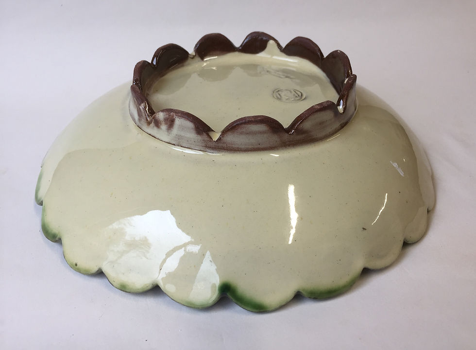 shallow bowl in cream with green ring 24x5cm